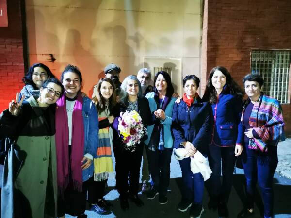 Merdim û avûkatê Aysele Tugluk û xeylêk kesî vizêrna verê zîndanî de pawenê.Tugluke hetê avûkatanê OHDyî, wekîlanê HDPyî Zuleyha Gulum, Serpil Kemalbay, wekîla verêne Burcu Çelîk, îdareyê partî yê Gebze, îdarekarê MA-TUHAYDER û xeylêk kesanî ra pê çapik, tîlîlî, slogana ''Jin, Jiyan, Azadî'' û vilikan ameye verwazîkerdene.