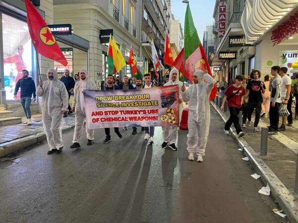 Ewropa de hêrişê kîmyewî yê dewleta tirke yê vera Herêmanê Pawitişî yê Medya pê çalakîyan yenê protestokerdene.