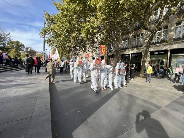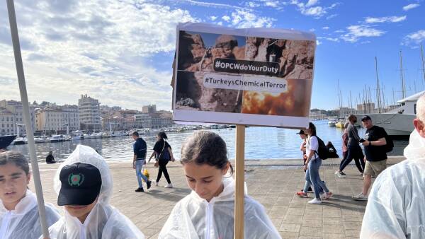 Şaristanê Montrpellierî yê Fransa de vengdayîşê CDK-Fyî ser o çalakîyêke ameye kerdene. Çalakîkeran seba ke bale biancê hêrişanê kîmyewîyan ser kincê sipîyî dayî xo ra û bombayê dûyî şuxilnayî.