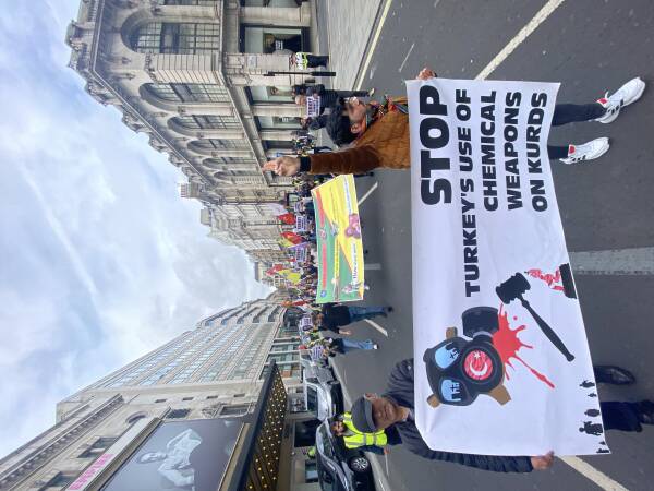 Şaristanê Kopenhagî yê Danîmarka de kurdîstanijan û dostanê înan çalakîya rayraşîyayîşî kerde. Çalakîye de sloganê sey 'Biciwîyê gerîlayî', 'Dîktator Erdogan' ameyî vatene. Çalakîye de venga dezgehanê mîyanneteweyîyan dîya ke vera hêrişan têbigêrê.