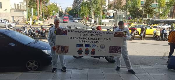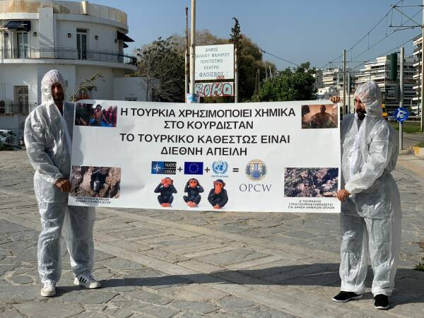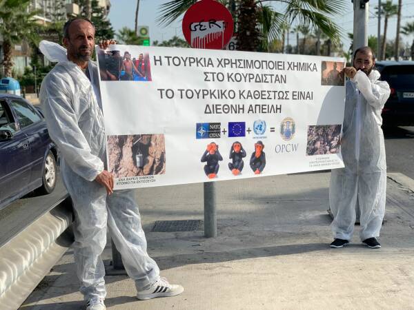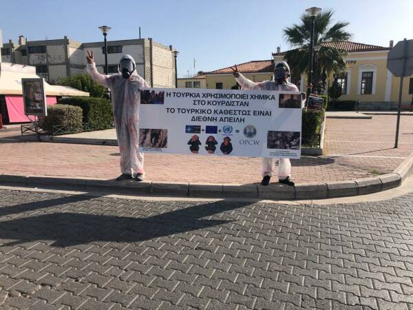 Paytextê Almanya Berlin, paytextê Finlandiya Helsinki, bajarê Qibrisî Limasol û paytextê Yunanistanî Atina de hêrişê kîmyewîyî yê dewleta tirke yê vera gerîlayan ameyî şermezarkerdene.