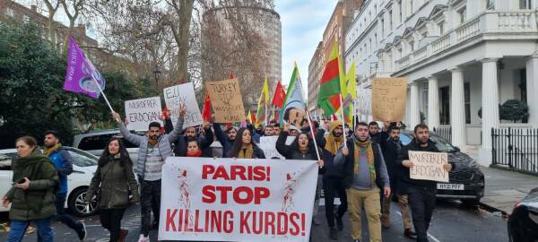 Zafê çalakîyî verê sersefîrîyanê Fransa de ameyî kerdene. Çalakîyan de sloganê sey "Şehîd namirin", "Sara, Rojbîn, Ronahî; Jin, jiyan, azadî” û ''Bijî Kurdistan'' ameyî vatene û posterê şehîdan ameyî berzkerdene. Çalakîyan de hêrişê dewleta tirke yê vera Başûr û Rojawanî zî ameyî protestokerdene. Çalakîyan de hêrsê vera qirkerdişî ameyî mojnayene û venga pêro hêzanê mîyanneteweyîyan dîya ke polîtîkaya krîmînalîzekerdişê kurdan û hemkarîya dewleta tirke ra fek vera bidê.