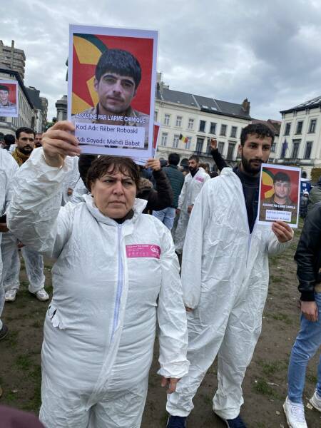Paytextê Belçîka Bruksel de kurdî û dostê înan verê Partlamentoyê Ewropa de ameyî têhet û şuxulnayîşê çekanê kîmyewîyan ê dewleta tirke yê vera gerîlayan protesto kerd.