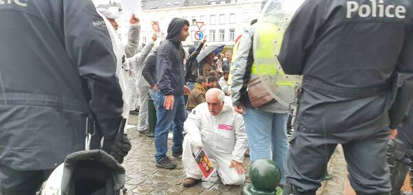 Seba ke dewleta tirke vera gerîlayan çekanê kîmyewîyan şuxulnena verê Parlamentoyê Ewropa de çalakîya protestoyî ameye kerdene. Polîsan pê gazê îsotî hêrişê çalakwanan kerd.