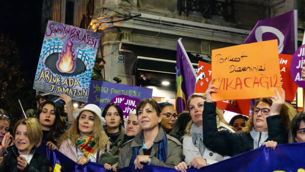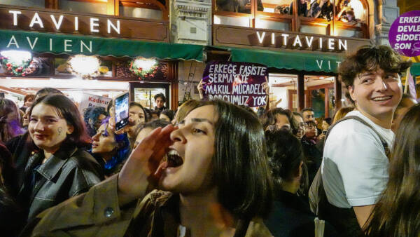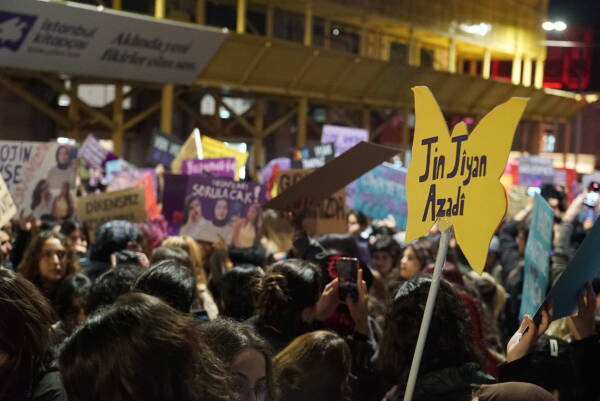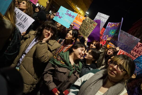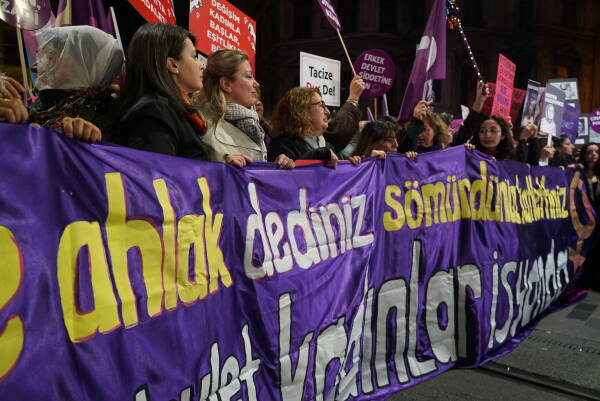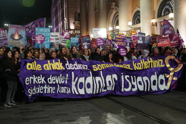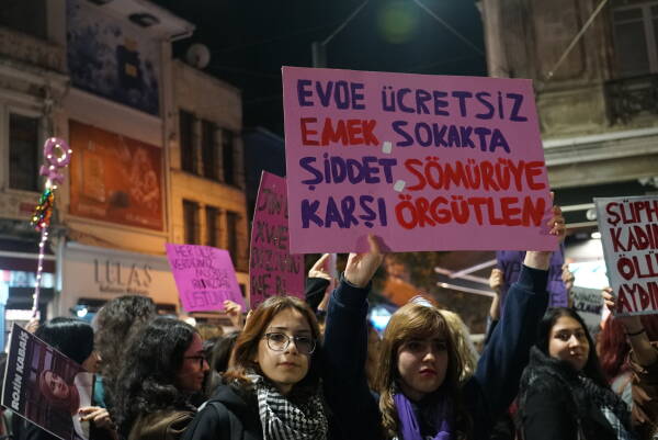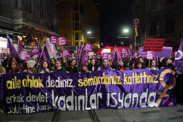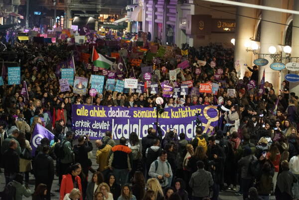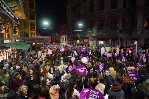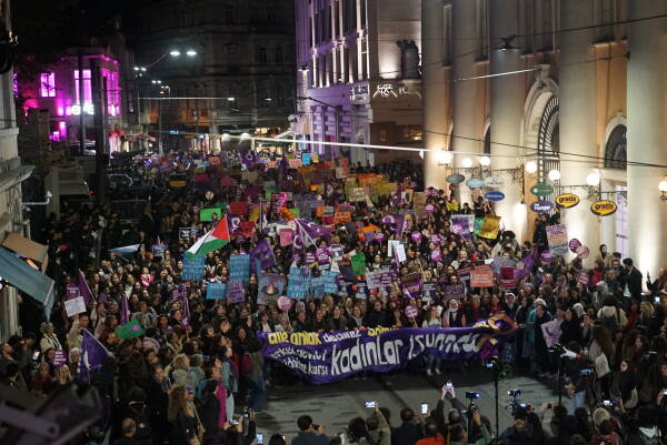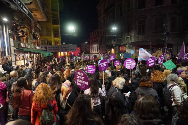 Çarçeweya 25ê Teşrîna Peyêne Roja Têkoşînî ya Mîyanneteweyî ya Vera Şîdetê Serê Cinîyan de Taksîmê Îstanbulî de bi hezaran barîkatê polîsan rijnayî û rayraşîyayîş kerd. Cinîyî bi sloganan vera şîdetê camêrd-dewlete Kuçeyê Îstîlalî de rayra şîyî.
