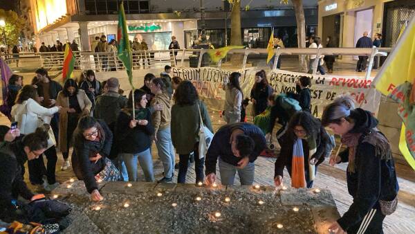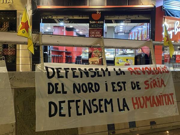 Çalakwanî bi slogananê "Bijî Berxwedana Rojava", "Bijî Rêber Apo", "Bijî Berxwedana Kobanê", "Jin Jiyan Azadî", "Bijî Berxwedana Tişrînê" û "Şehîd Namirin" qîrayî û sozê xurtkerdişê têkoşînî da.